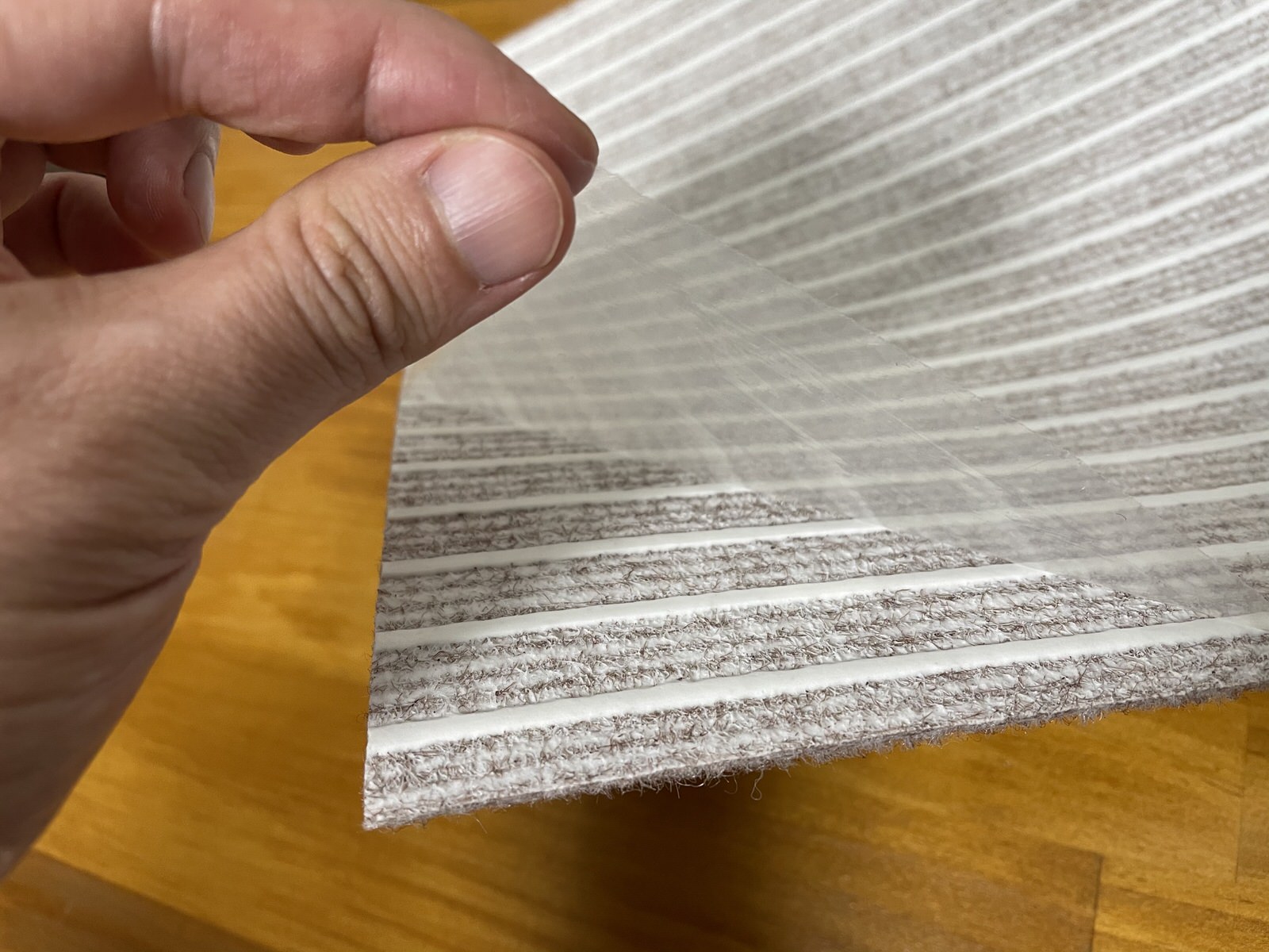吸着する裏面にはフィルムがはられているので、一枚ずつフィルムを剥がして敷き詰めていきます。