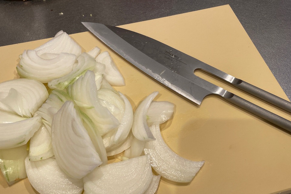 人生で初めて万円を超える包丁での玉ねぎ試切です。ドキドキ